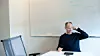 Harald Eia drar frem en blå penn og snur seg mot tavlen. Han tegner en graf, mens han snakker uavbrutt. Den ene aksen beskriver hvor god en student er til å skrive, mens den andre viser hvor langt man er kommet i studieløpet. Eia mener det er en sammenheng. Desto lengre du studerer, desto dårligere blir din formidlingsevne.