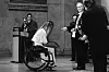 Grisen i sin bærestol entrer scenen
