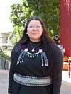 Nancy Paillalef (23) er en mapuchekvinne fra hovedstaden Santiago og står på stand på universitetet for ungdoms- og urfolksorganisasjonen «Wechekeche Ka Itrofillmongen», som kan oversettes til ungdom og biologisk mangfold.