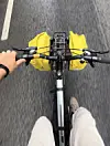 Men Kosmo hviler ikke. Bare denne dagen sykler han 195 kilometer. De siste milene krysser han jorder. Vinden blåser, og det begynner å tordne.