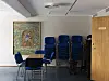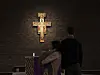 Opp trappen og inn i foredragsrommet, så langt inn en journalist og en fotograf slipper til, henger forskjellige ikoner på veggene. Ett av Sankt Dominikus, den spanske presten og senere helgenen, som grunnla munkeordenen på 1200-tallet. Et annet maleri viser Jesus mellom et lam og en ulv, med korsets glorie kretsende rundt hodet.