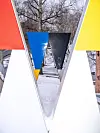 Nede ved Akerselva, ved siden av trappene opp til selve KHiO. Double Dynamic (2012) er to skulpturer på åtte meter av Camilla Løw (f. 1976). De er laget av brennlakkerte stålplater, som er sveiset og satt sammen.
