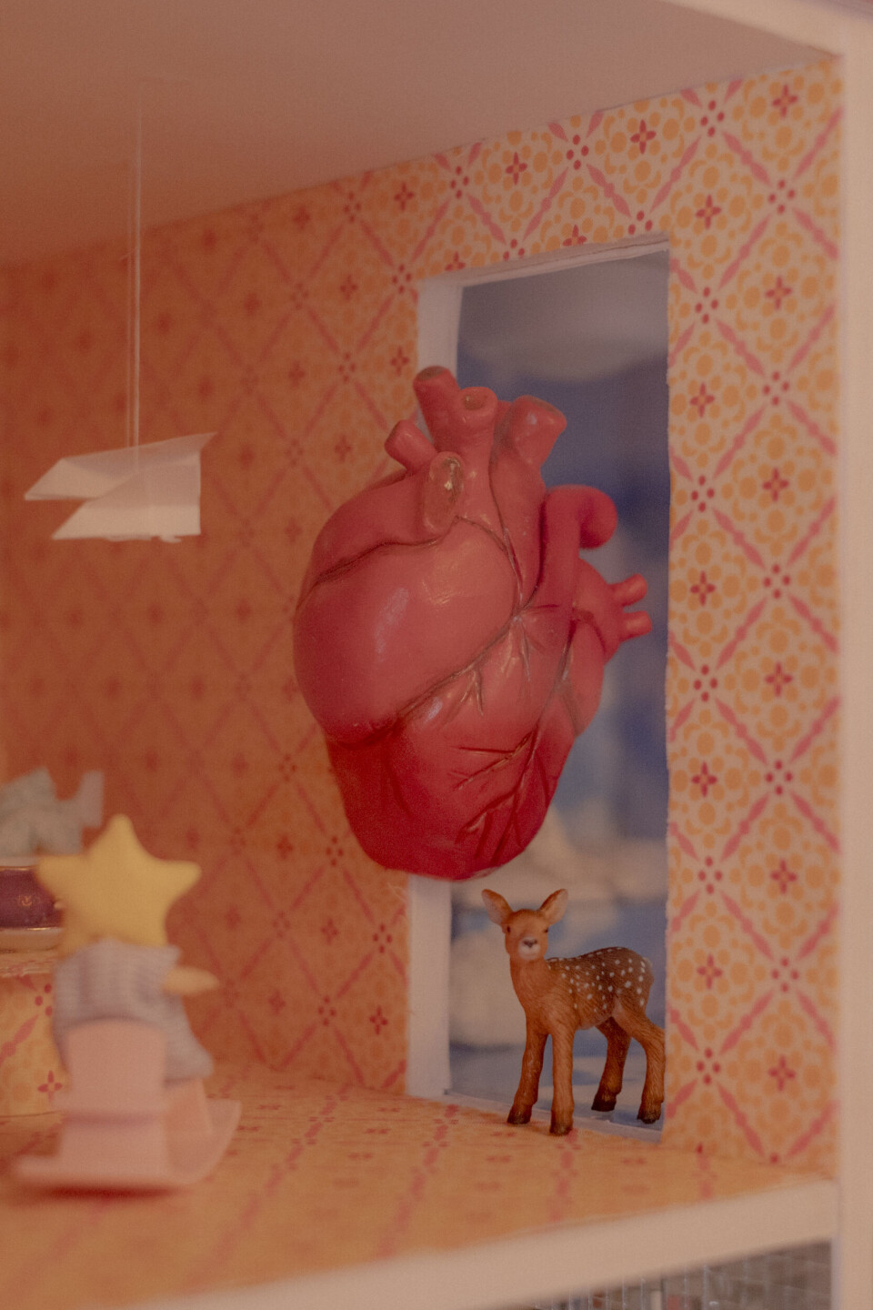 Obdusert dukkekunst står plassert rundt omkring i leiligheten. På toppen av en kommode på soverommet står et rosa dukkehus med armer og bein. Bak Jansen sitter en dukkekropp hvor hodet er erstattet med en radio. Som et barns ekte kjærlighet til dukken sin, tenker hun at alle ting i naturen har en sjel. Animisme, heter det.